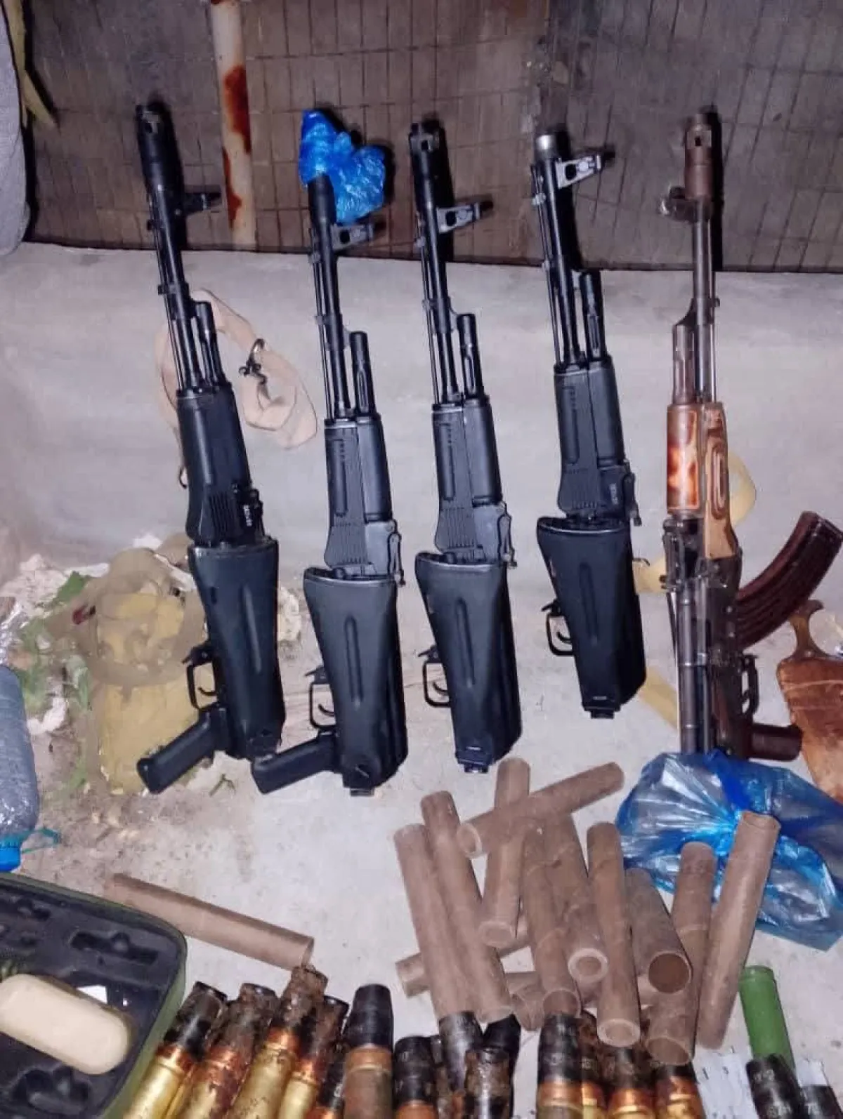 أسفرت عملية الضبط عن العثور على أربع قطع من أسلحة كلاشينكوف، وتسع قذائف هاون، وخمس وثلاثين قذيفة عيار 35.